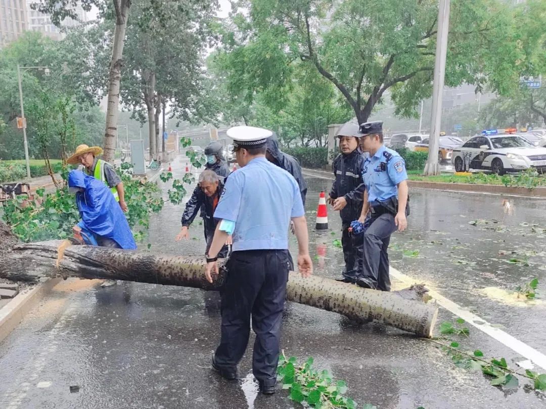 交警2分钟赶到现场紧急处置树倒影响辅路进主路的树枝/北京交管提供