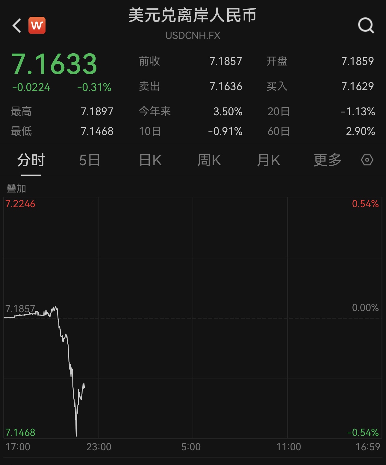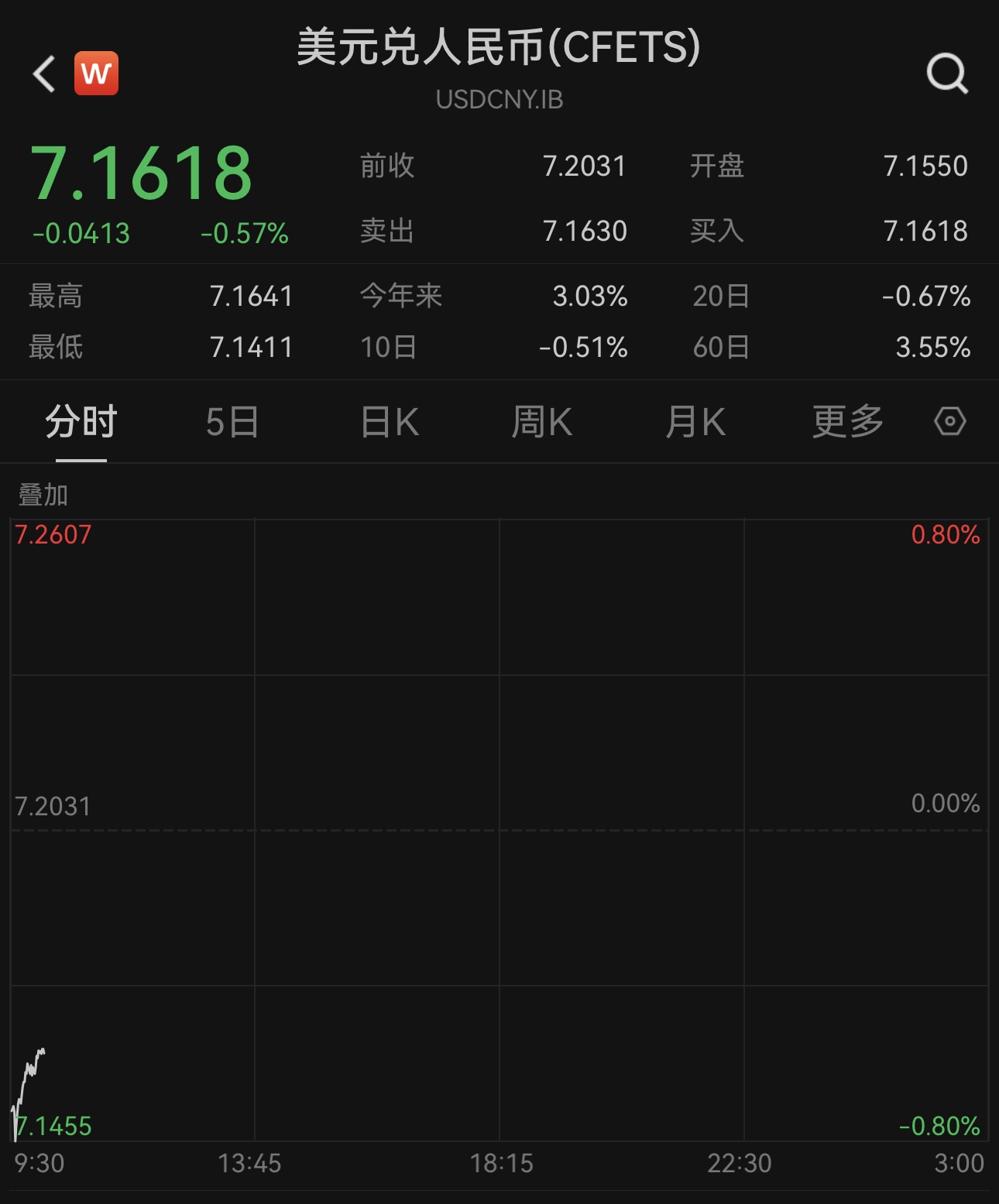 人民币对美元汇率一度升破7.15