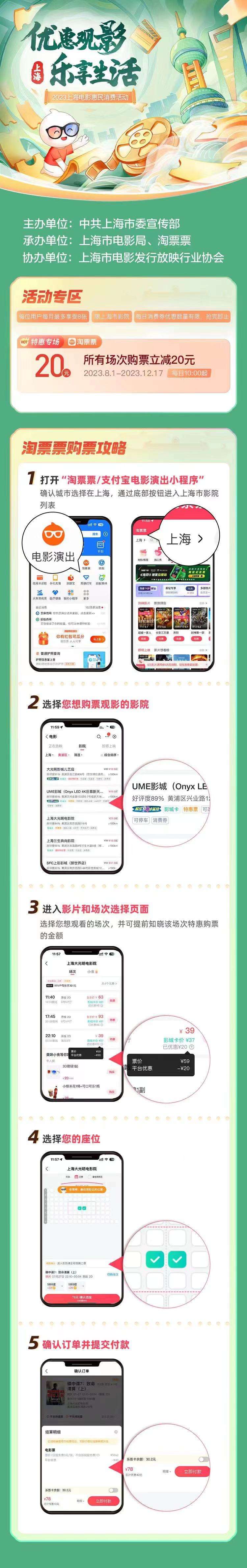 “优惠观影 乐享生活”2023上海电影惠民消费活动由中共上海市委宣传部主办,上海市电影局、淘票票承办,上海市电影发行放映行业协会协办。