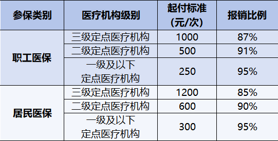 二类及三类门特:一级及以下定点医疗机构85%,二级定点医疗机构80%,三级定点医疗机构75%。