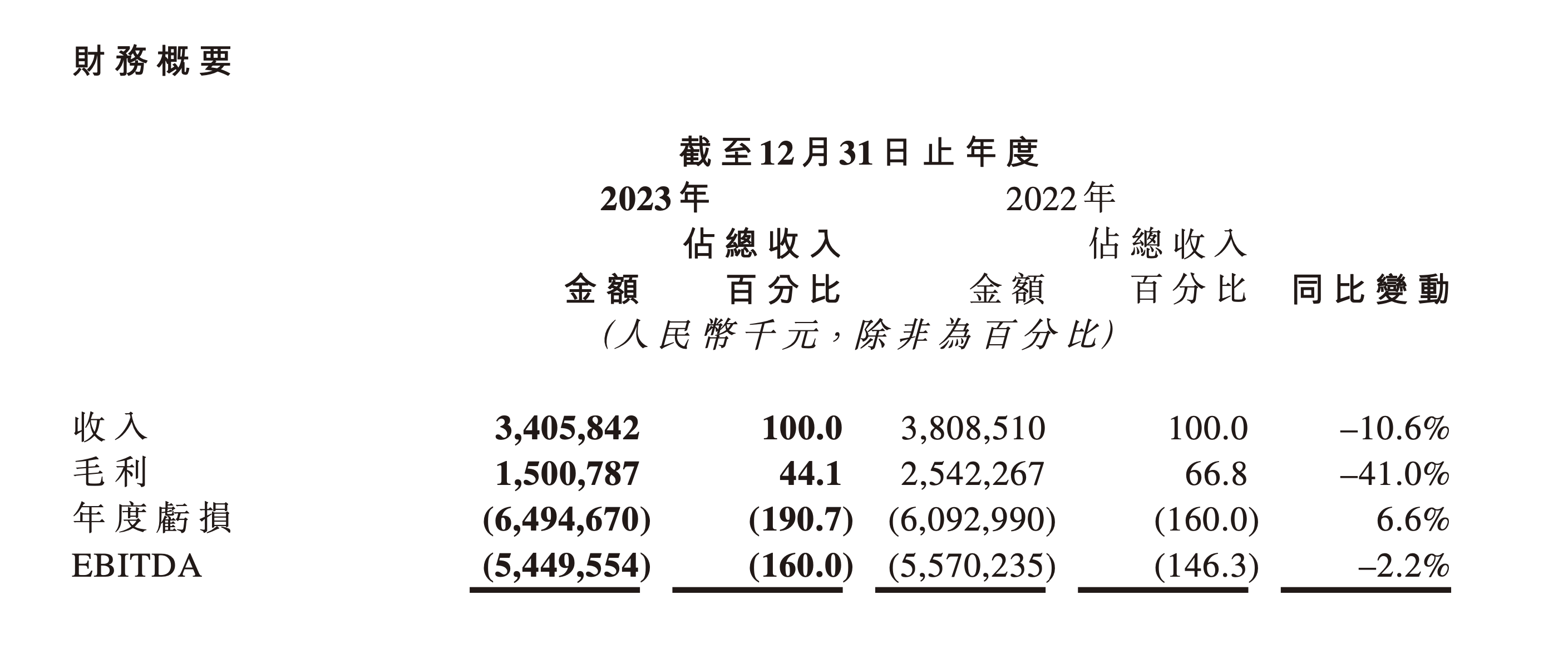 3月26日晚间,人工智能软件公司商汤集团股份有限公司(商汤-W,0020.HK)发布2023年全年业绩,实现全年营收34.06亿元,同比减少10.6%;年度亏损64.94亿元,同比扩大6.6%,2022年同期为亏损60.45亿元;EBITDA(息税折旧及摊销前利润)为亏损54.5亿元,同比收窄2.2%。