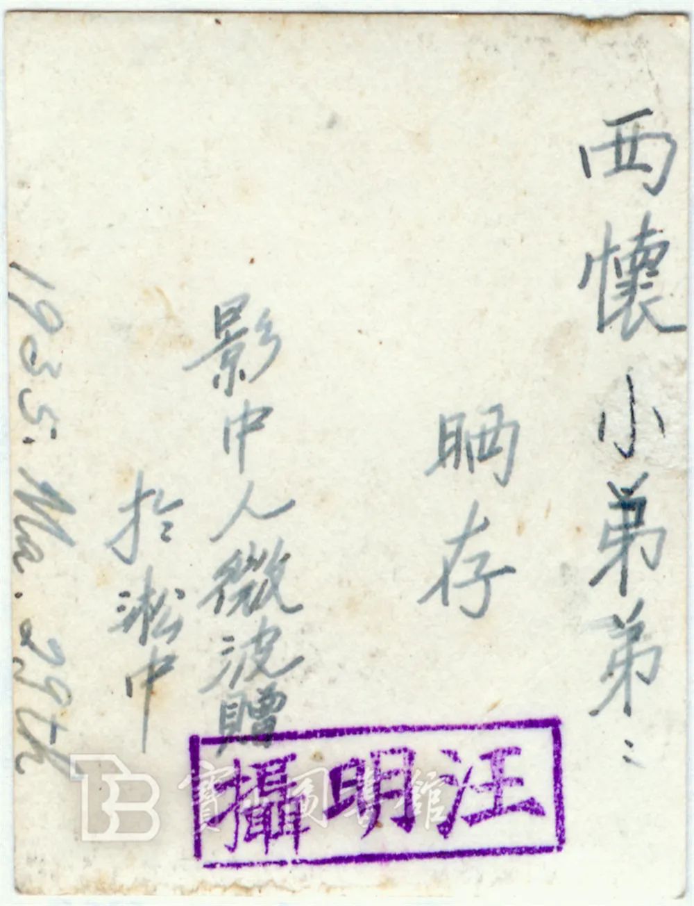 学生微波赠同学西怀相片、背面(摄于1935年3月29日)