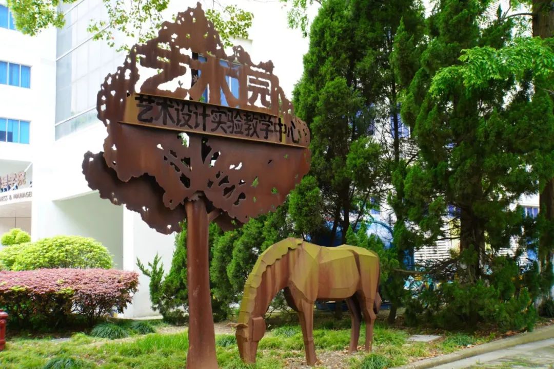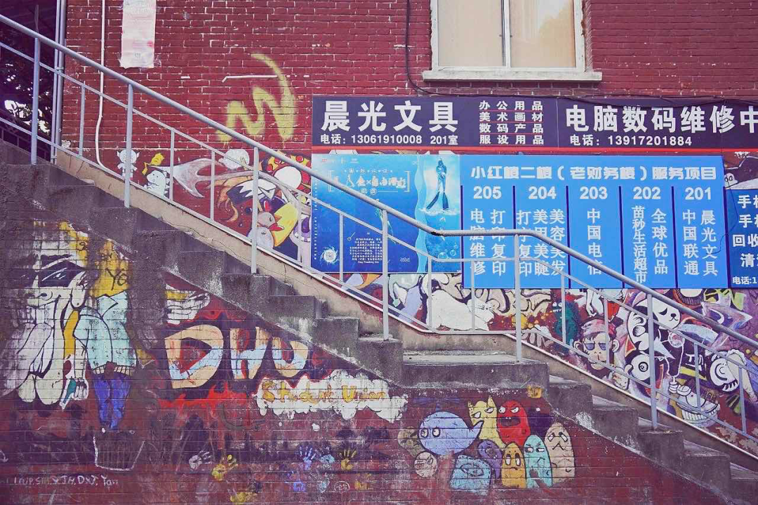 这里是师生们创作的展陈集中地,无论是房顶、墙面还是屋檐下,前卫时尚的设计作品令人惊叹不已。