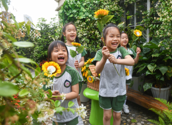 图说:孩子们的祝福藏在向日葵花心