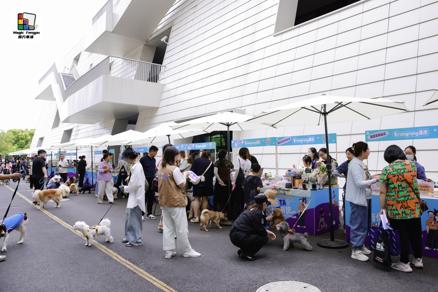 除了宠物公益跑,在奉贤区南上海宠物经济商会的支持下,本次宠物节还设置了20多个市集摊位,现场汇集了皇家宠物食品、小许宠物、星巴克、上海商学院等各参展单位,食品、玩具、服饰、医疗等品类一应俱全,推动“TA”经济迸发活力。