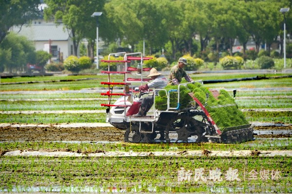 眼下正是夏种时节,连日来,青浦区金泽镇莲湖村的“蛙稻米”秧田里,插秧机正忙着进行有序插秧。莲湖村水稻种植历史悠久,位于金泽一级饮用水水源保护区,地理环境优越,水稻可一年两熟。著名的“蛙稻米”在种植时投放“吃虫大王”的海南虎纹蛙,采取“以蛙护稻、以稻育蛙”的生态循环模式。