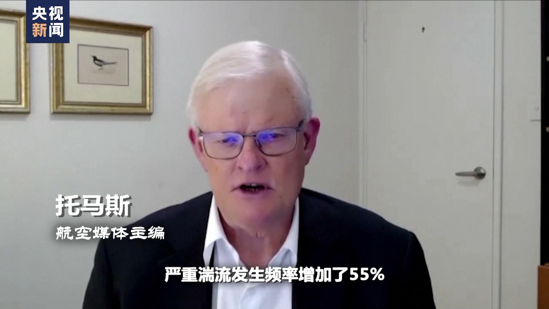 航空媒体主编托马斯:在过去40年里,严重湍流发生频率增加了55%。中度湍流增加了37%,轻微湍流或轻度湍流增加了约17%。随着气候变化,乘飞机变得更加颠簸。