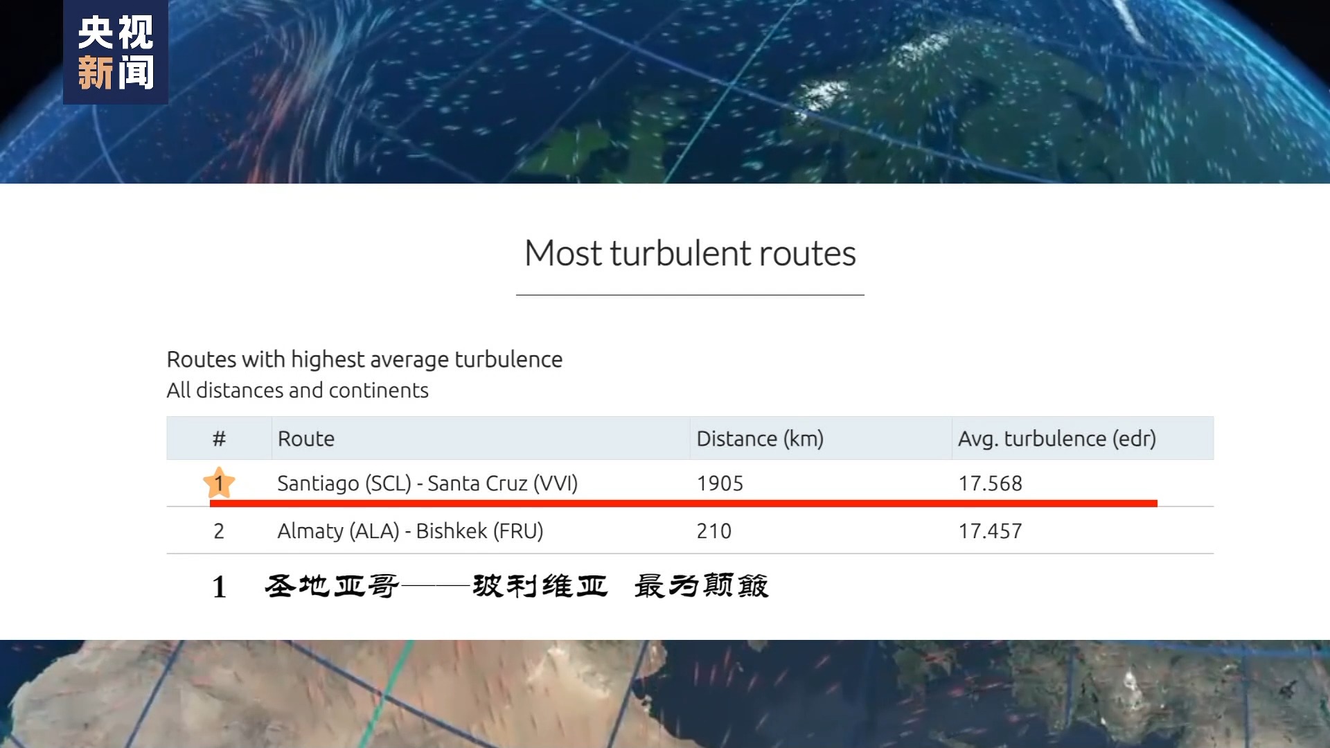 Turbli是一家湍流预测网站。在对全球大约15万条不同航线进行分析后,该网站指出在2023年,智利圣地亚哥与玻利维亚维鲁维鲁国际机场之间的航程最为颠簸。