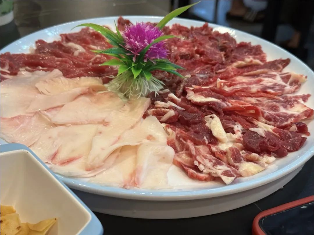 新鲜牛肉在牛骨清汤里涮上两三下再蘸上特色沙茶酱再惬意不过了