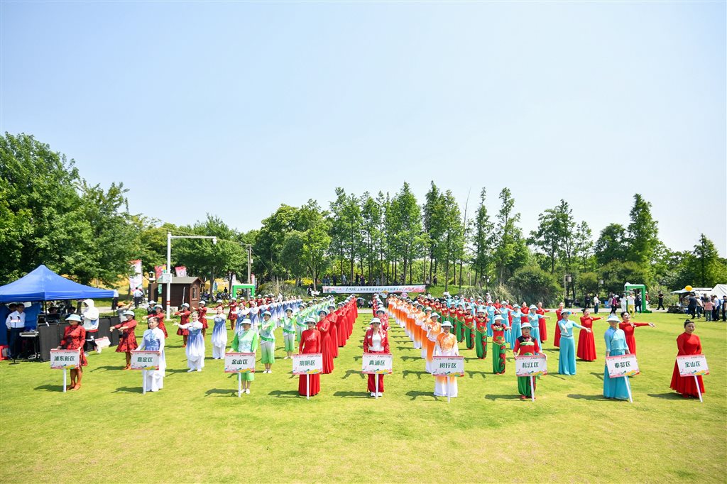 在奉贤庄行郊野公园区内,《党旗飘扬的方向》《田歌声声庆丰收》《金色飞扬》《绿水青山》等富有本地农村特色、不同风格的广场舞节目轮番上演,参赛选手们各个精神饱满、舞姿轻快,舞出了魅力,舞出了风采,舞出了对新时代的美好愿景。经过激烈的角逐,最终,奉贤区、青浦区荣获本次大赛前二名。