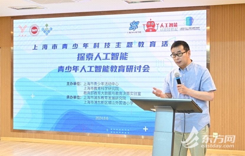 东方网记者柏可林6月7日报道:6月6日,上海市青少年科技主题教育活动暨“探索人工智能”青少年人工智能教育研讨会在浦东新区福山外国语小学举行,汇集了众多教育、科技领域的专家学者,共同探讨青少年人工智能教育的新生态构建。