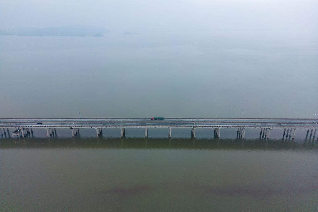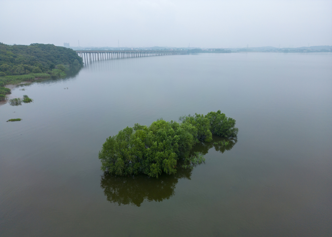 2024年6月26日,江西九江绕城高速鞋山湖大桥处湖水高涨。