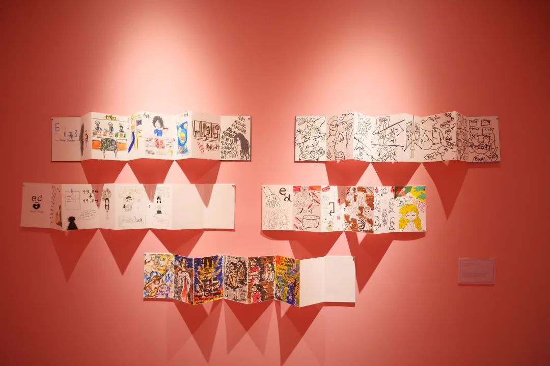 据展览策展人赵子荷介绍,粉色展区的作品情绪较为高涨,风格偏温暖;蓝色部分则多为情绪冷静的作品。“当我们走进整个色彩空间的时候,可以慢慢从红色走到蓝色,再从蓝色走到红色,跟着色彩可以体验两种不同情绪的交织。”赵子荷表示。