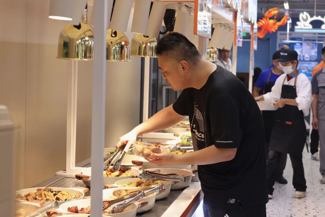 居民黄阿姨说道:“我刚刚尝了店里的面包,真的很新鲜,而且价格公道。”黄阿姨还提到,她计划晚上回家时在线上下单,让盒马将新鲜蔬菜和水果送到家中,这样就可以省去再去市场的时间。而在附近工作的张女士表示:“以前中午想吃点好的,总得走好远或者等很久的外卖,现在好了,下楼就能吃到热腾腾的小炒,还能顺便买点鲜花装饰办公室。”