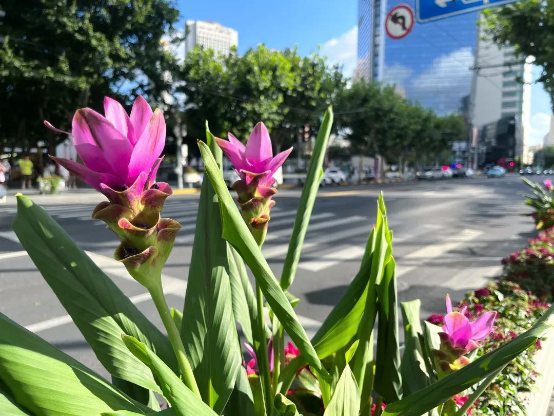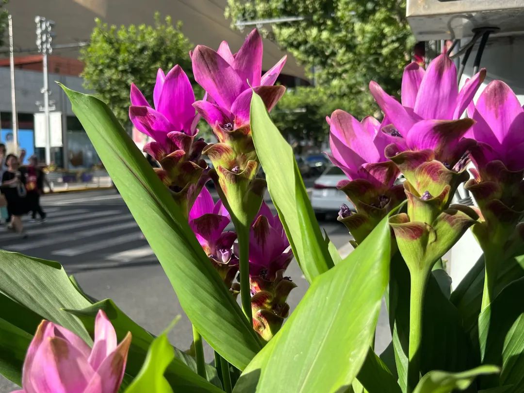 这种原产地泰国清迈的花朵,用艳丽的色彩让静安街头的氛围更加热情。