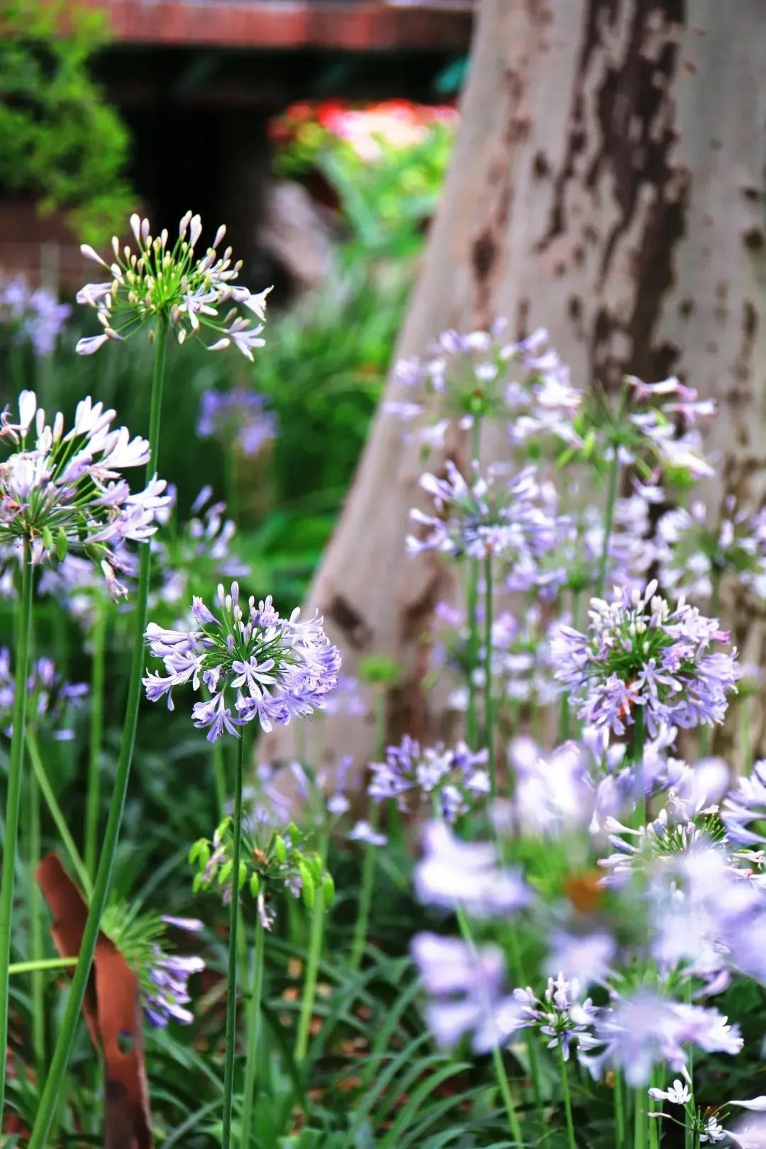 炎炎夏日,百子莲正在静安的公园绿地中绽放,轻盈的蓝紫色花朵带来一丝清爽的凉意。