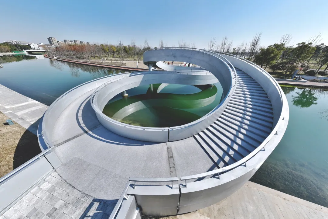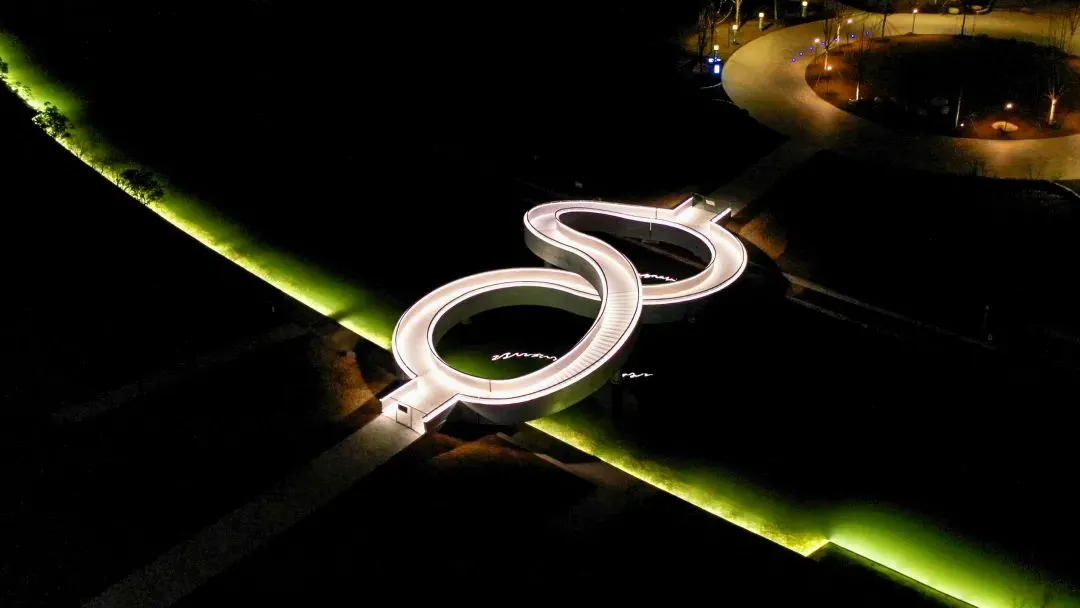 公园附近有座高颜值的“8”字形人行桥:上海之鱼1号桥,俯看有点像莫比乌斯环。它连通湖堤路与年丰公园,上下皆可通行。情侣走一走这座桥,仿佛有着象征永恒的寓意。