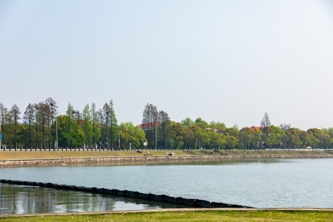 世博文化公园的湖边草坪非常绿,宽敞而开阔,既可远眺双子山,又可以欣赏湖泊和十一孔桥。