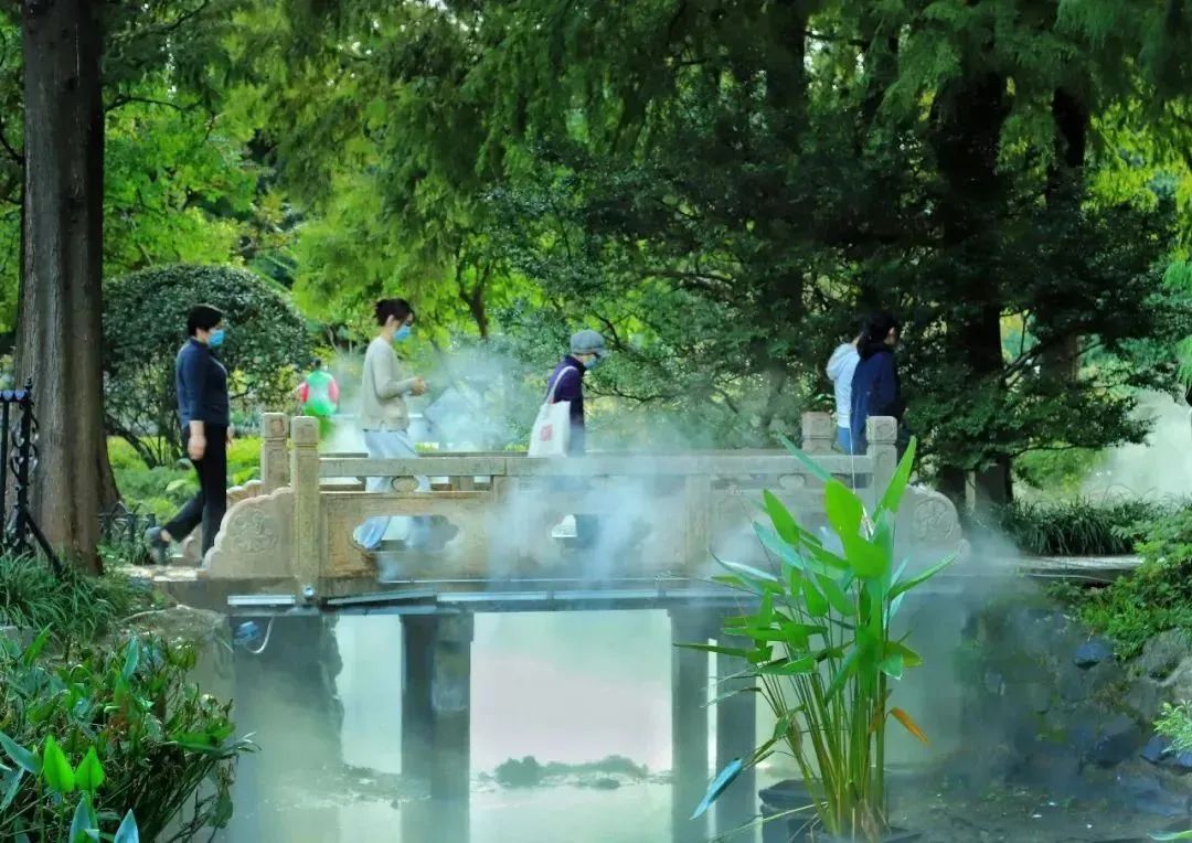 不远处那座情人桥,作为中山公园内又一处独特景观,其装设的雾森喷雾系统更是为其增添了几分神秘与浪漫。当白雾袅袅升起,仿佛为这座石桥披上了一层轻纱,漫步其间的恋人们,宛如步入仙境,感受着属于他们的浪漫时光。