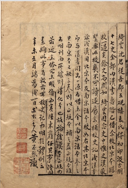 徐行可旧藏《后汉书》黄丕烈跋