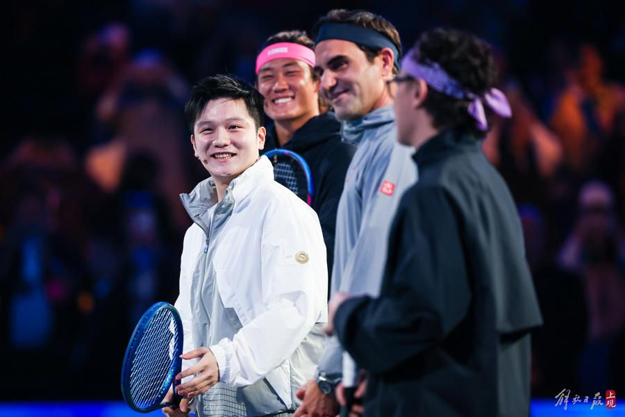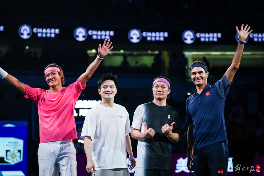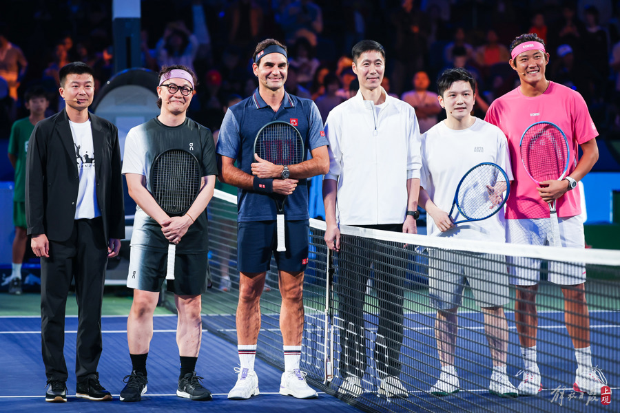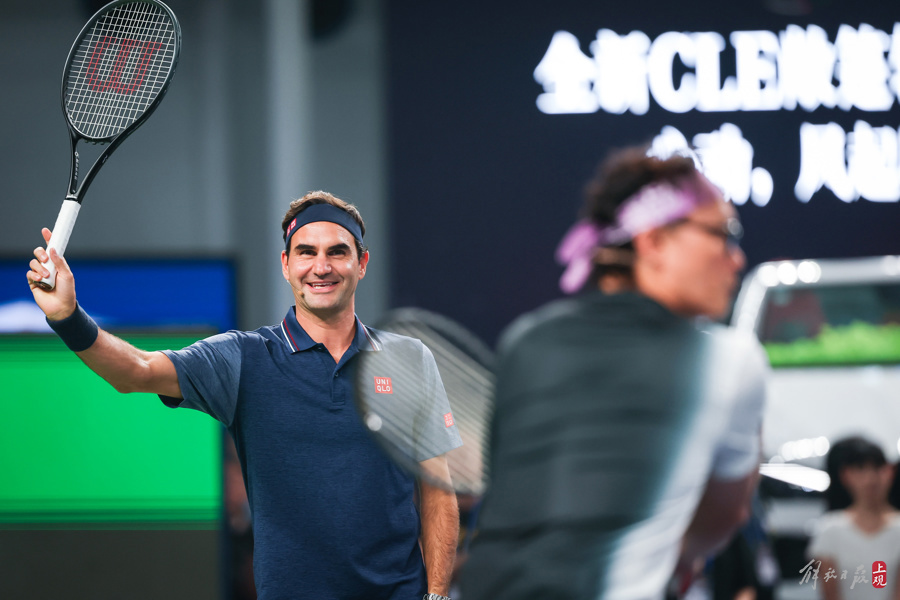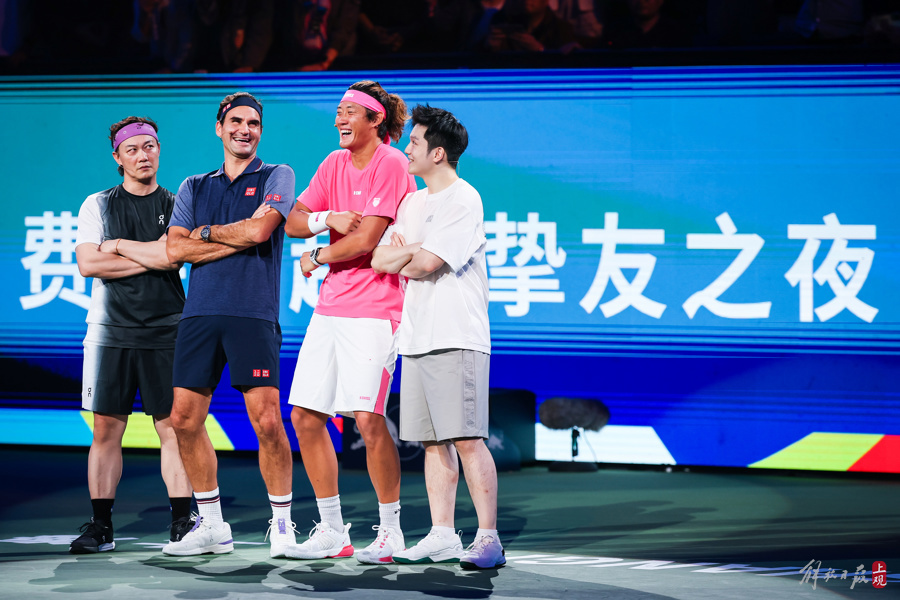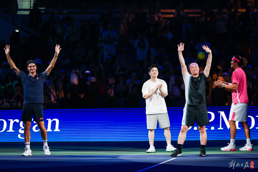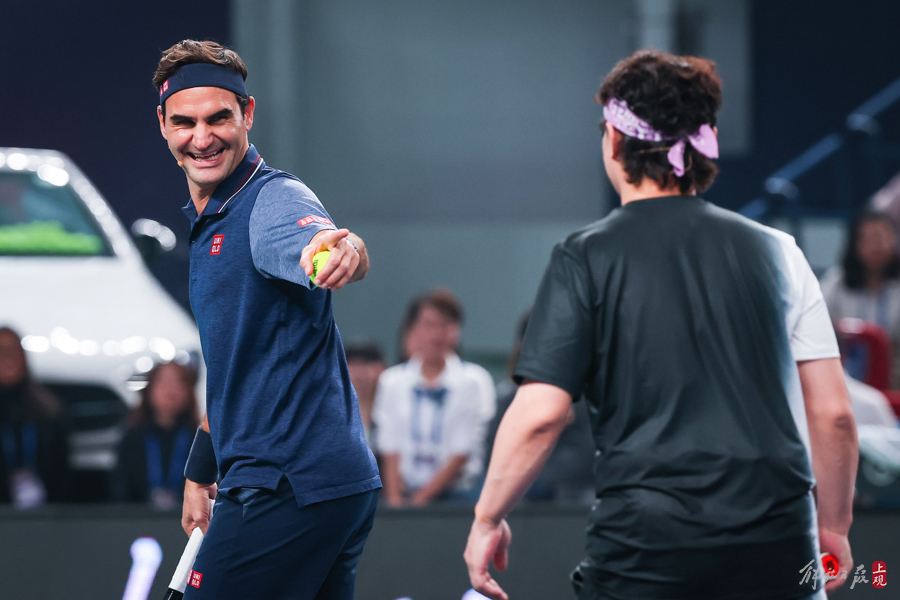 上海依然是费德勒的“第二故乡”,作为这场双打表演赛首个出场的嘉宾,费德勒一出场就引发高分贝尖叫声。
