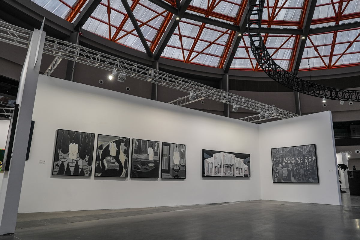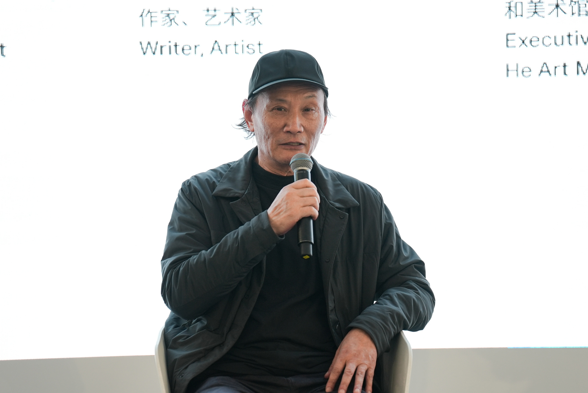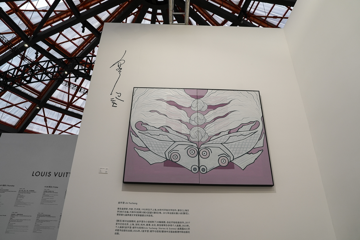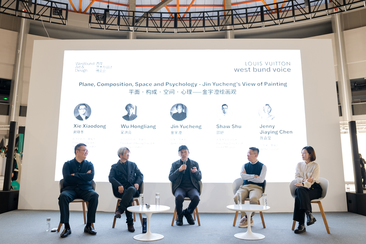 11月7日,金宇澄的最新画作在上海西岸穹顶艺术中心亮相。围绕“平面·构成·空间·心理”,金宇澄与北京画院院长吴洪亮、和美术馆执行馆长邵舒、在艺创始人谢晓冬、主持人陈嘉莹展开对话。