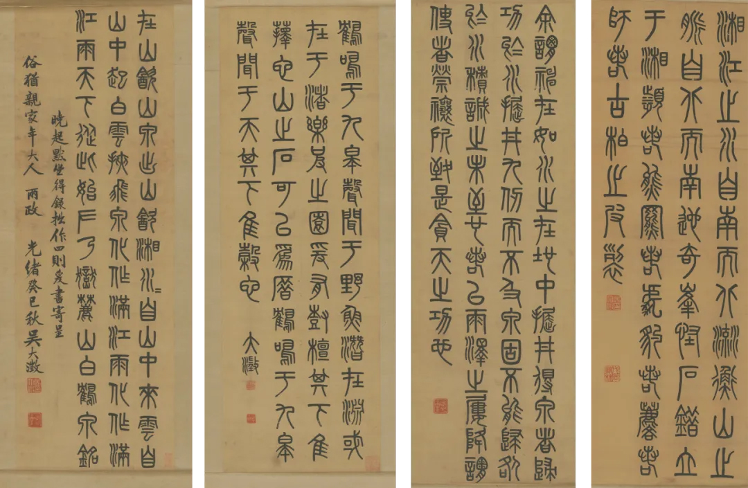 吴大澂,《篆书四条屏》,湖南博物院藏