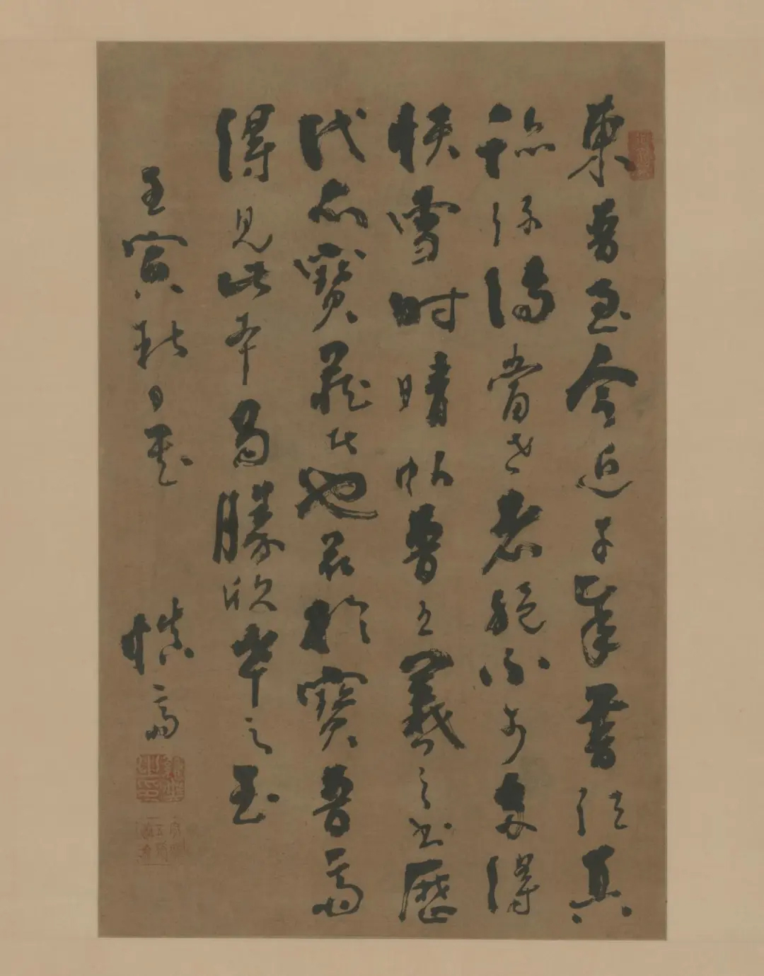 乾隆辛未进士罗典(1718-1808年)是湖南湘潭人。他授编修擢御史,历官鸿胪寺少卿,老成宿望,在岳麓书院的历史上占有重要地位,曾任山长27年,弟子门生多显达。展览中《罗典录书论草书立轴》中记录了自己得见东晋王羲之《快雪时晴帖》上好拓本的欢欣庆幸,行笔苍劲肆意,多破锋,富于拙趣。