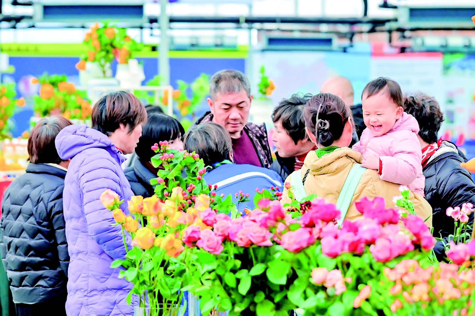 展馆内人流如织,不少市民结伴前来选购鲜花。市民张依婷和妈妈、奶奶一起从泖港镇赶来选购鲜花,没一会儿工夫,3个人怀里抱着鲜切花,手里拎着盆花,满载而归。另一边,市民胡金珍也和同事收获颇丰。“每种花都好看,忍不住想买,冬天寒冷,但是看着鲜花心里热乎乎的,我选的鲜切花2元或者3元一支,很划算。”胡金珍开心地分享道。