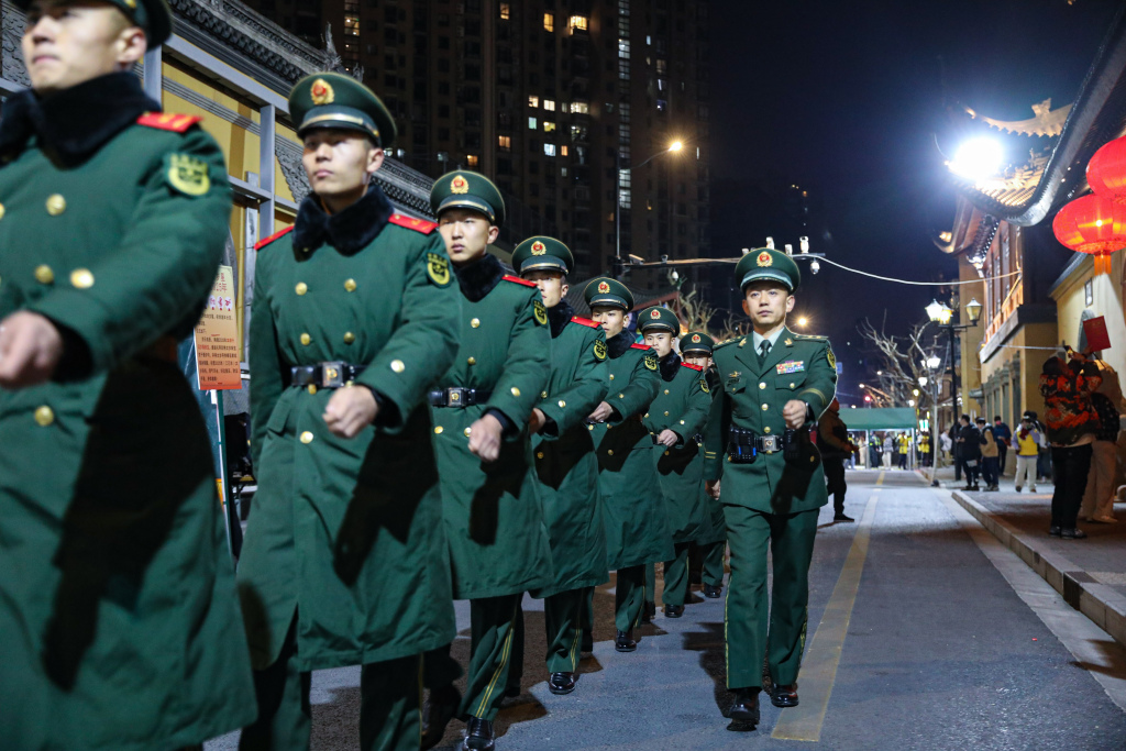 除夕夜,武警官兵上岗执勤。上海武警 图