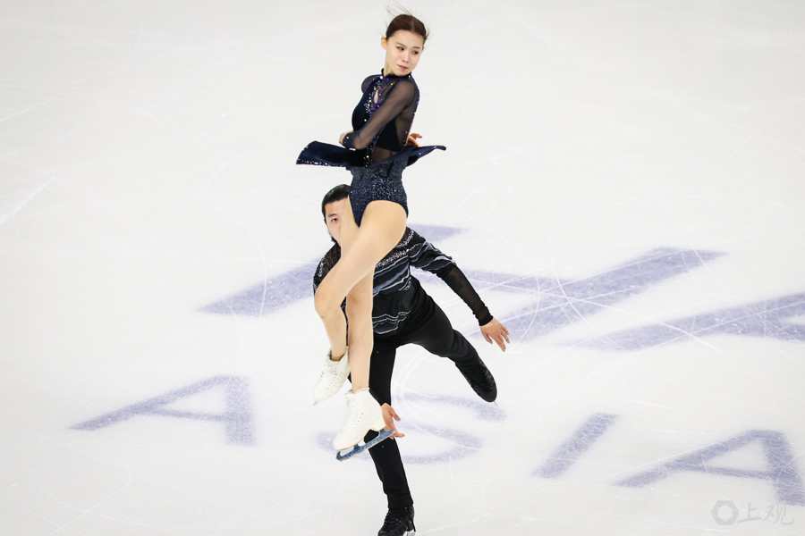 第九届亚冬会花样滑冰项目双人滑自由滑比赛,中国组合王瑀晨/朱磊在比赛中。