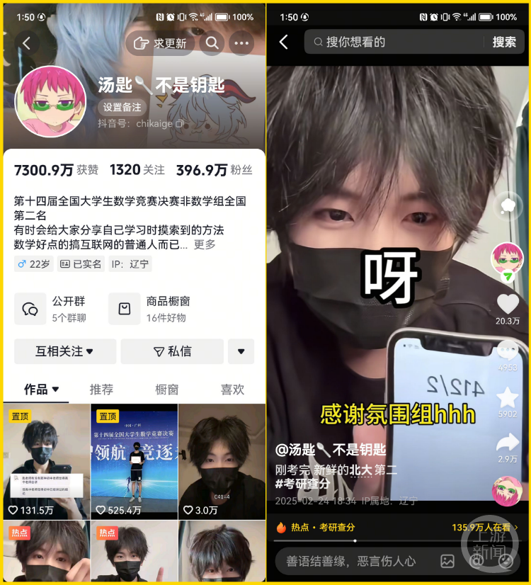 2月24日,全国各地陆续发布2025年硕士研究生招生考试(初试)成绩,百万粉丝女网红“迅猛龙 特蕾莎”停播三个月考研上线,引发广泛关注。上游新闻(报料邮箱:baoliaosy@163.com)记者梳理发现,此前,也有网红博主考研成功:今年一位有百万粉丝的博主,在没有停更的情况下备考,成功上线北京大学数学学院;一位去年刚毕业的美妆博主,则在半年前停更后专心考研,最终成功上线。
