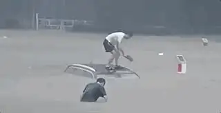 2021年郑州7.20暴雨时,李坤朋拿着菜刀劈开一辆被困在积水中的轿车,救出被困祖孙三代,被网友称为“菜刀哥”。其后李坤朋被人民政府授予“见义勇为”“郑州防汛救灾身边好人”等荣誉称号。