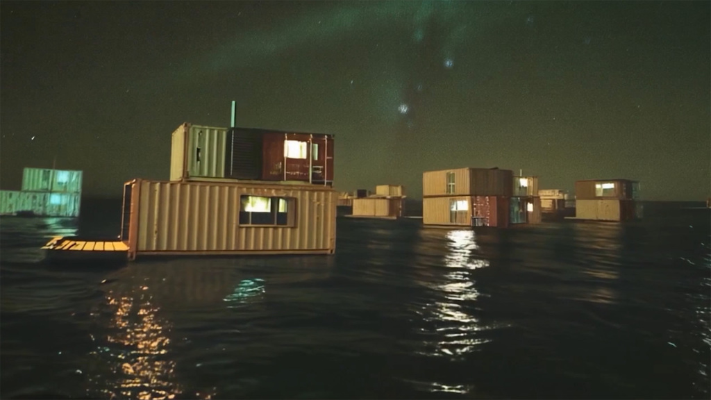 这个作品里涉及的一个观点就是,陆地在最开始的时候并不是像现在这样划分了道路、私有土地,用栏杆、围墙等各种划分边界的方式去围起来。我们现在在陆地上的居住和流动其实已完全被规划好了,这就导致了很多问题,比如说住房问题,以及在不同城市之间的流动性问题。在我们习惯了这种安逸和舒适之后,那些未被开发、未被规范的地方,反而变成了一种天然的禁区,或者说变成了把它们当作安定生活之外的探险、用追求另类生活方式的消费态度去面对它们。比如说,一些保存着大片野生状态的森林公园、国家公园,其实我觉得也是一种人为框定的结果,而且它在潜意识里面鼓励的还是一种消费方式。