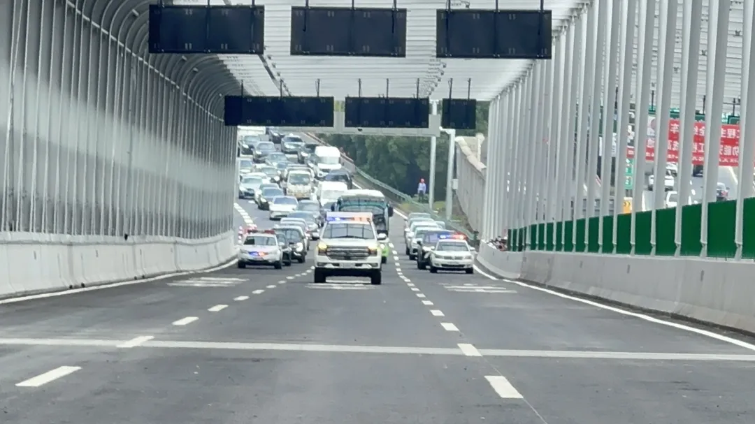 上午10时在警车压道引导下社会车辆从外环立交方向驶入S4标志着西幅主线正式通车