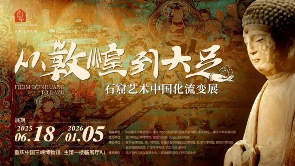 敦煌莫高窟与大足石刻,是中国最早入选世界文化遗产的两座石窟,二者南北呼应,一先一后,串联起佛教石窟艺术自西域传入中原的脉络。这两座艺术宝库即将展开一场跨越时空的对话——2025年6月18日,重庆中国三峡博物馆年度大展“从敦煌到大足:石窟艺术中国化流变”,将首次以联合展览的形式,展出展品200余件/套,其中国宝级文物2件、国家一级文物15件、国家二级文物10件,三级文物8件,复制洞窟6座。