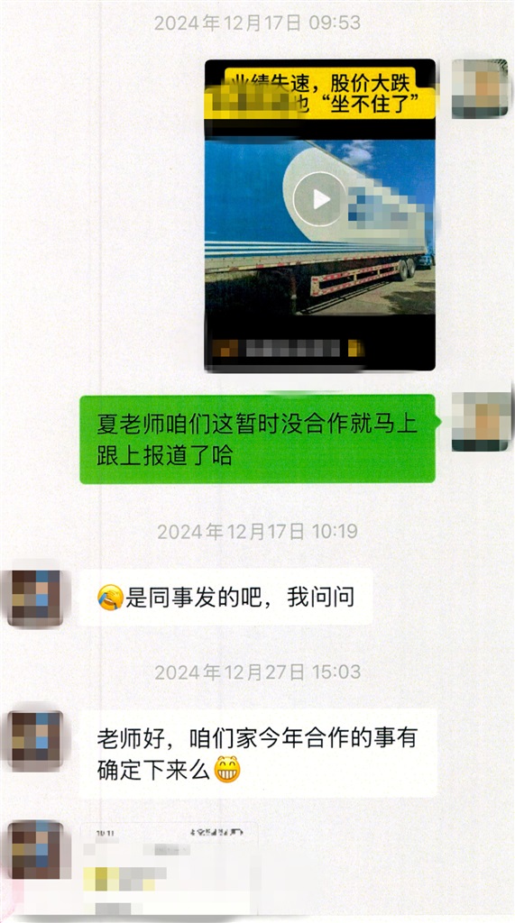图为嫌疑人与受害公司微信聊天记录