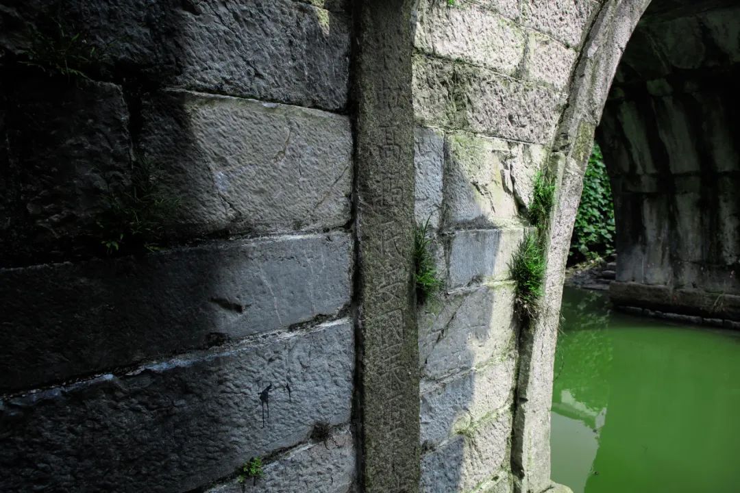 法华桥横跨下横泾,桥拱正上方刻有“法华桥”三字,西侧桥联“彩虹高揭民安国泰迥万古,翠石横空人寿年丰历千秋”至今清晰可见。据桥基石记载,此桥由冯关培等二十四人捐银一百二十两修建,2004年被列为奉贤区文物保护单位,2008年修缮后仍为居民日常通行使用。