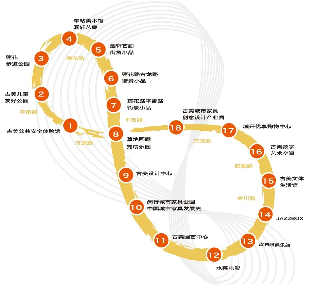 随着闵行区“春申美好生活季”系列活动2025世界设计之都大会闵行分会场暨“上海闵行·深圳福田”城市家具双城展启幕,古美城市家具CityWalk也亮相啦。这条路线整合古美内18个特色空间节点与3条绿色步道资源,总长3.2公里的莫比乌斯环形路。以万源路上的古美公共安全体验馆为叙事起点,最终在古美城市家具创意设计产业园区画上句号。