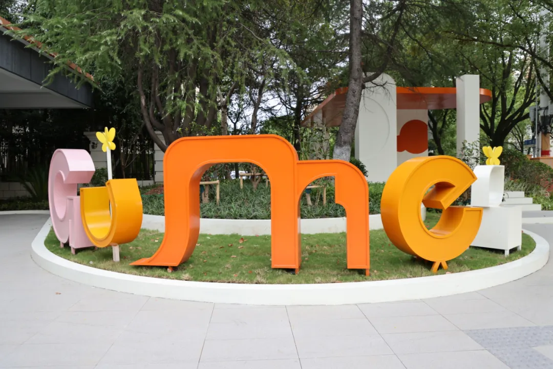 艺术雕塑以字母“GUMEI”(古美)为原型进行艺术创作,结合现代波普艺术元素。