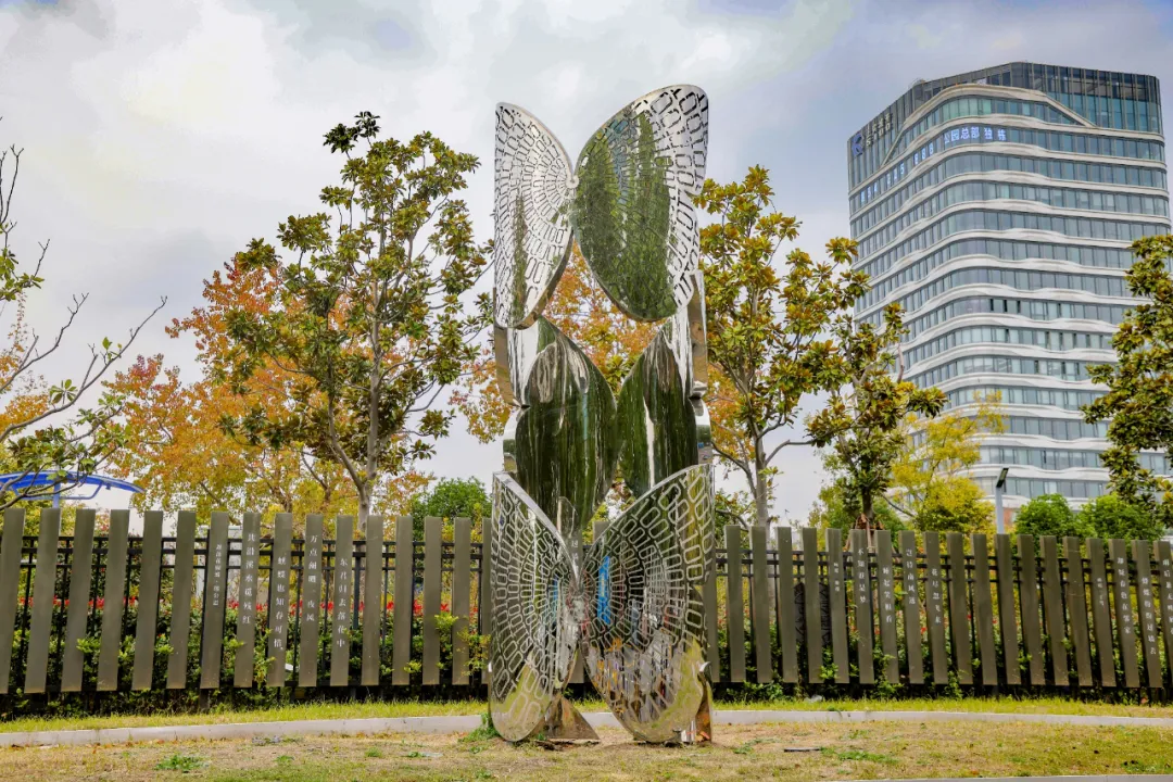 融合蝴蝶起飞的形态,通过艺术雕塑的设置,打造兼具艺术展示与科普功能的街头空间。