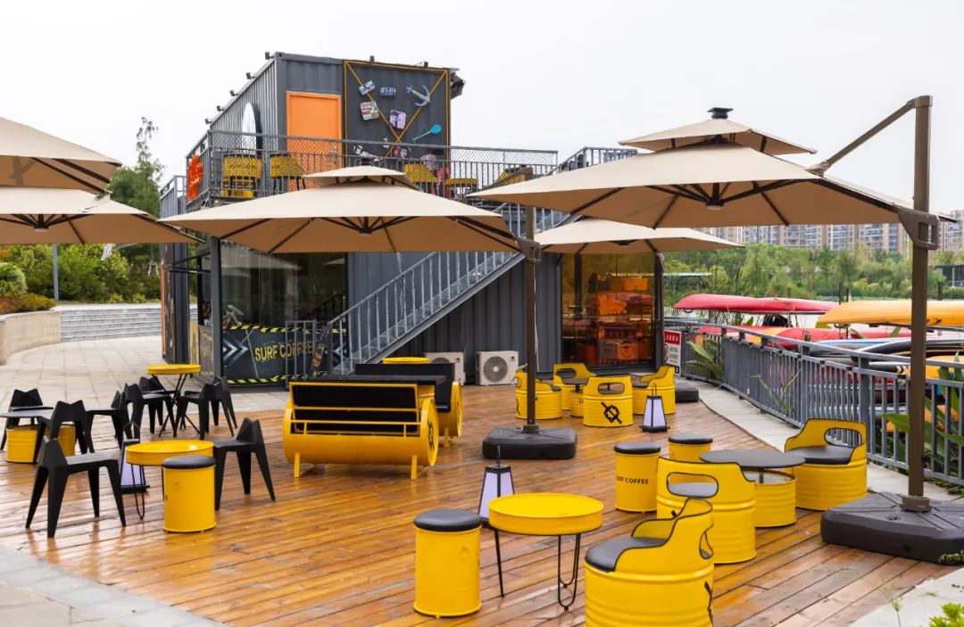 位于公园蝶湖旁,可以体验皮划艇、桨板等水上运动项目,同时也能享受到咖啡和美景。