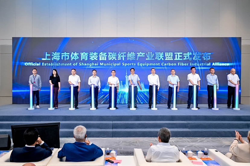 在市经信委领导见证下,上海市体育装备碳纤维产业联盟成立,未来将整合上海石化、宝武碳业、云路复材等10余家首批联盟单位资源,凝聚“产、学、研、用、金”多方优势,共同搭建体育装备碳纤维材料创新与应用的新高地。