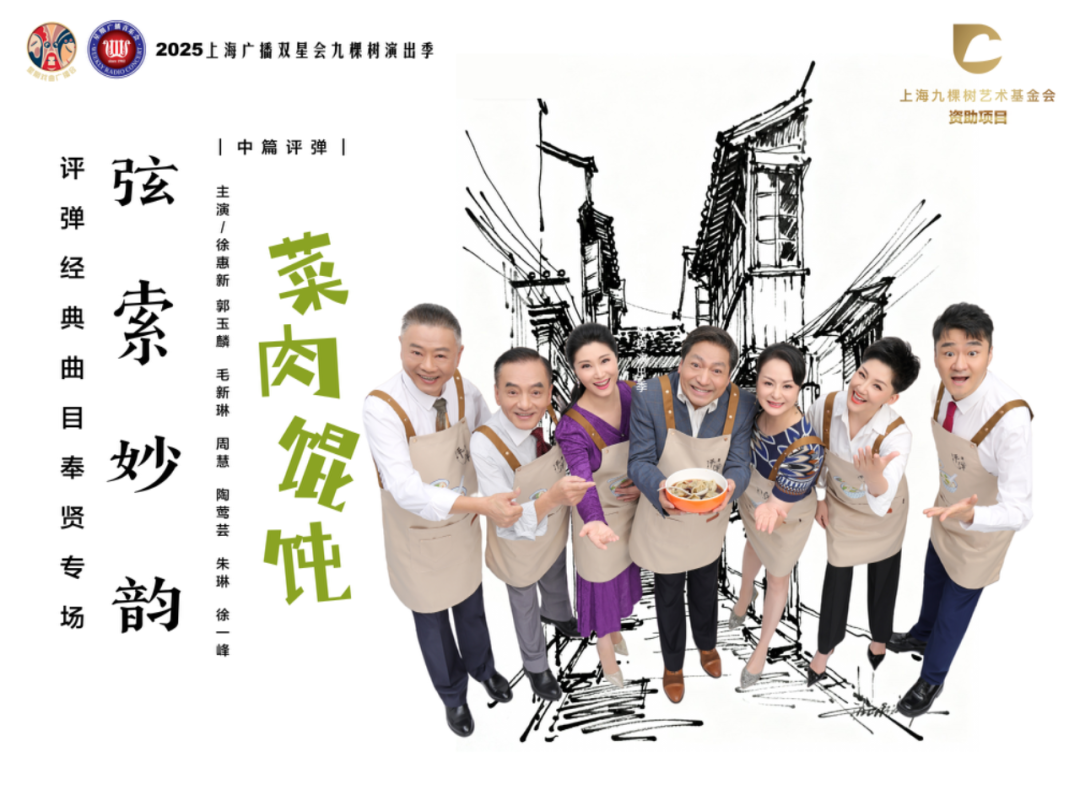 中篇评弹《菜肉馄饨》是上海评弹团在文学IP转化的最新力作,改编自金莹同名小说,由上海评弹团团长高博文担任制作人、特邀著名评弹表演艺术家徐惠新担任编剧及主演。该中篇延续了上海评弹团近年来深耕本土现实主义题材的创作脉络,持续挖掘具有海派特色的市井故事,聚焦当代家庭关系,以一碗家常馄饨串起两代人的情感羁绊。作品讲述了退休父亲老汪穿梭于相亲角为儿子寻觅幸福的故事。演出以吴侬软语为基调,以“说噱弹唱演”演绎当代生活,将上海弄堂的家长里短升华为充满幽默与温情的都市诗篇。