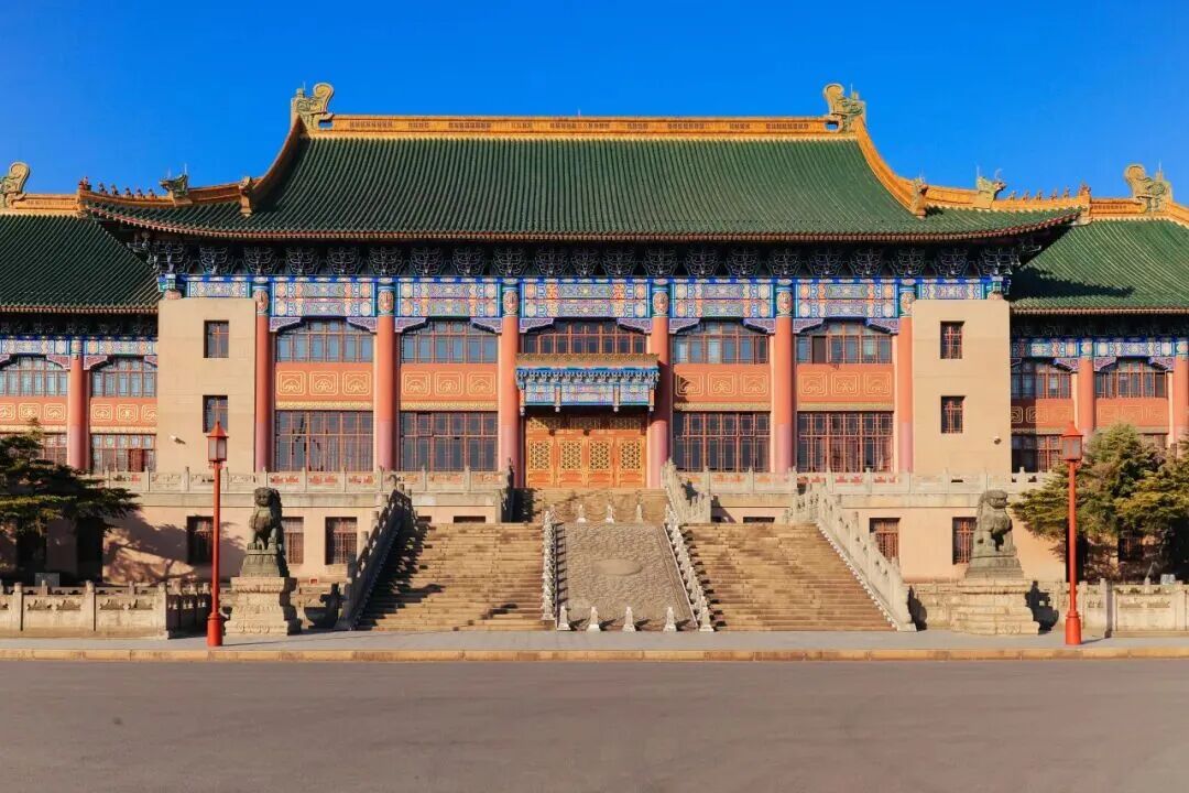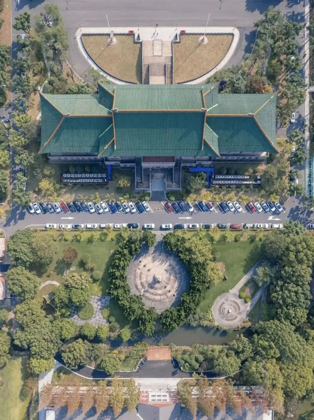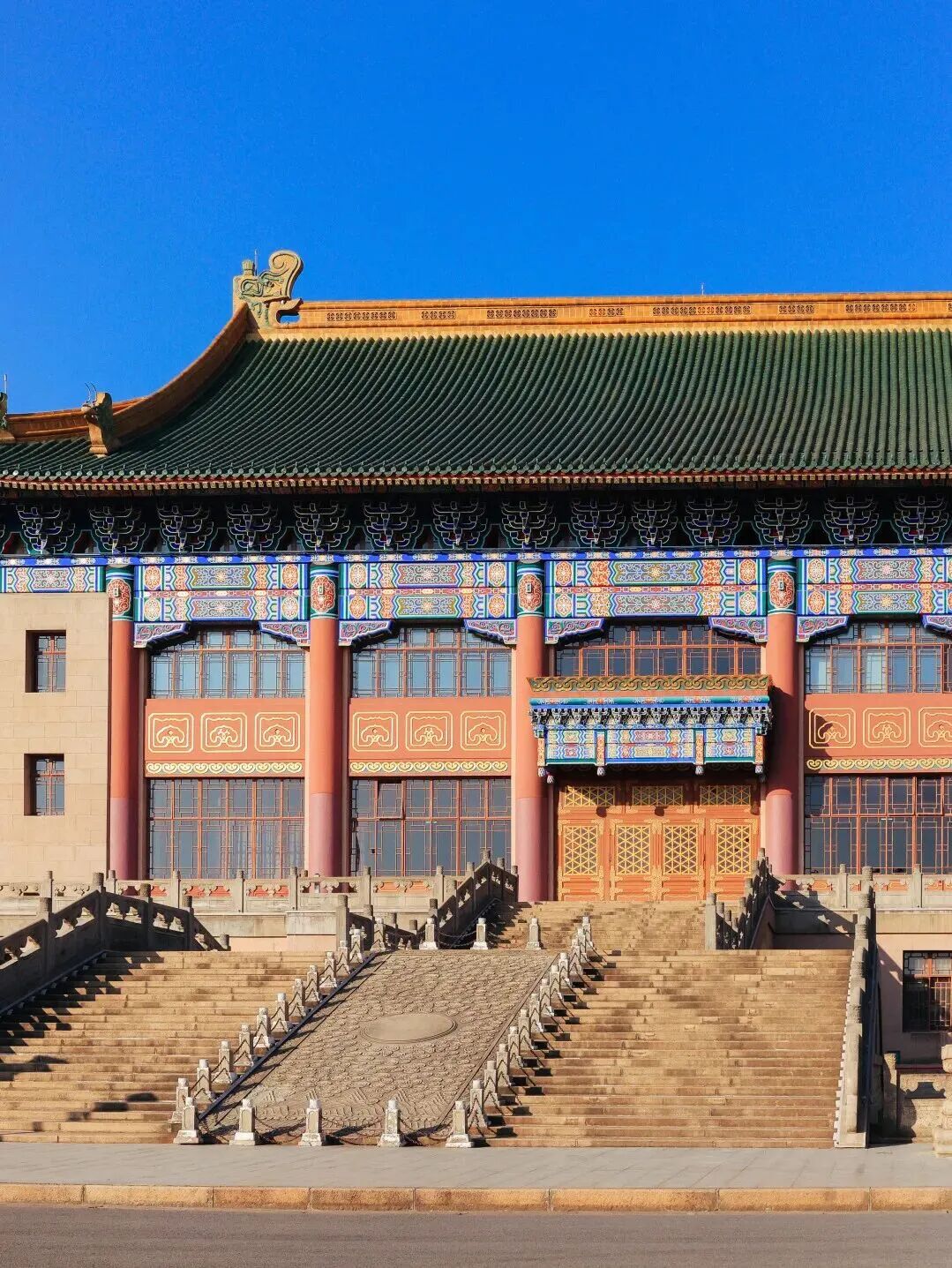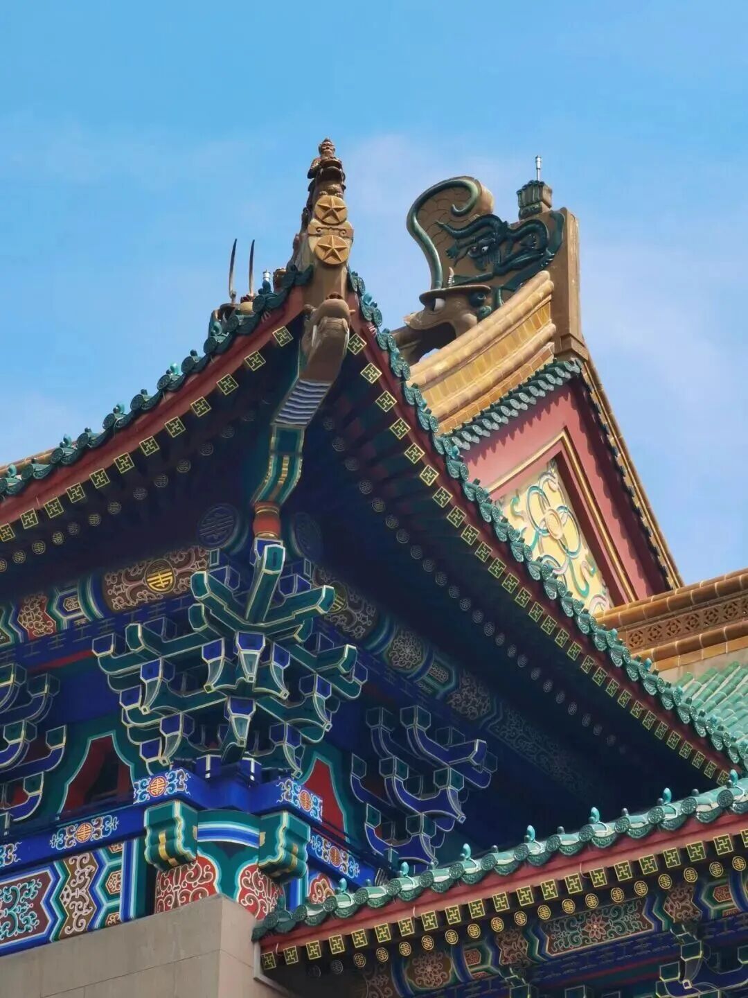 由于大楼屋顶是醒目的绿色琉璃瓦