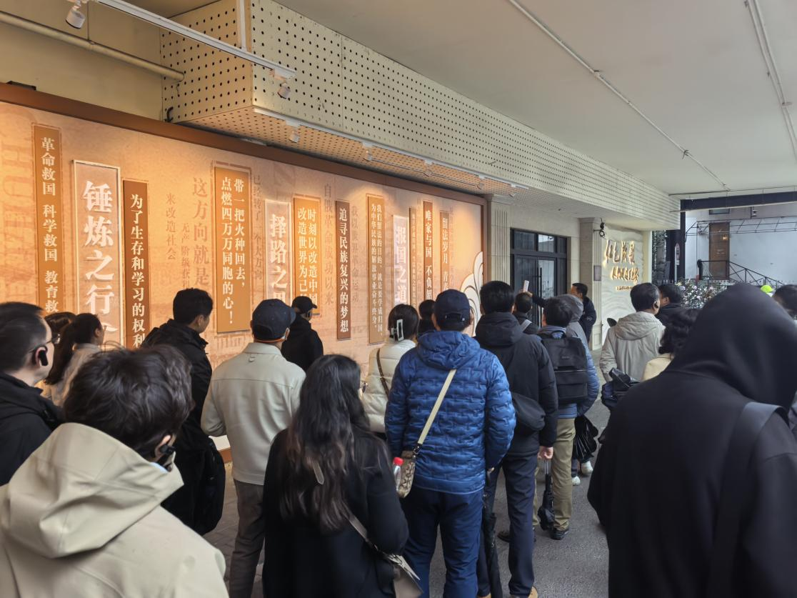 一路行走,一路叩问。上应大的杞万村老师在秦皇岛路码头(原黄浦码头)讲述了青年周恩来在民族危亡之际,毅然选择马克思主义、确立人生信仰的历程;在中共四大纪念馆,学员们深入了解了周恩来投身于党的事业、加强早期党的组织建设、推动革命发展的艰辛历程。在浦江饭店旧址(原礼查饭店),周恩来和邓颖超在此冷静应对“四·一二”反革命政变的惊涛骇浪,展现出共产党人在危急关头的定力与担当。最后一站,学员们走进了中国共产党代表团驻沪办事处旧址(周公馆)。1946年间,周恩来同志在此为争取和平民主、巩固和扩大统一战线不懈奔走,始终坚守人民立场、胸怀民族大义,在复杂局势中彰显共产党人的政治本色。