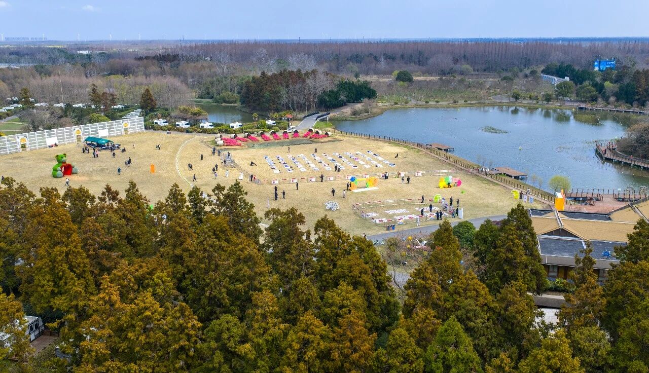 赛场外同样热闹,主题集市集中展示崇明非遗文创、特色农品与传统小吃,“花瓷汇”等互动体验活动趣味十足。园内春花绽放、鸟鸣清脆,梅花鹿悠闲漫步,陪伴选手们来参赛的亲友与游客在赏春观景中享受休闲时光。